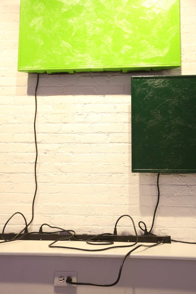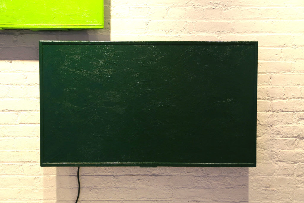 This installation consists of an assembly of several monitors that have been entirely painted with acrylic paint. A dot is arbitrarily selected from impressionist Georges Seurat's pointillism work "Sunday Afternoon on the Island of Grande Jatte," and the monitor placed in the same position as the dot is painted. Focusing on the similarity with pointillism in that a monitor displays an image by means of a collection of points known as pixels, we regarded the monitor itself as a point by devoiding it from its functionality. Even though the entire surface is painted and the screen images are not visible, all the monitors are connected to a power source, leaving the possibility of functionality.