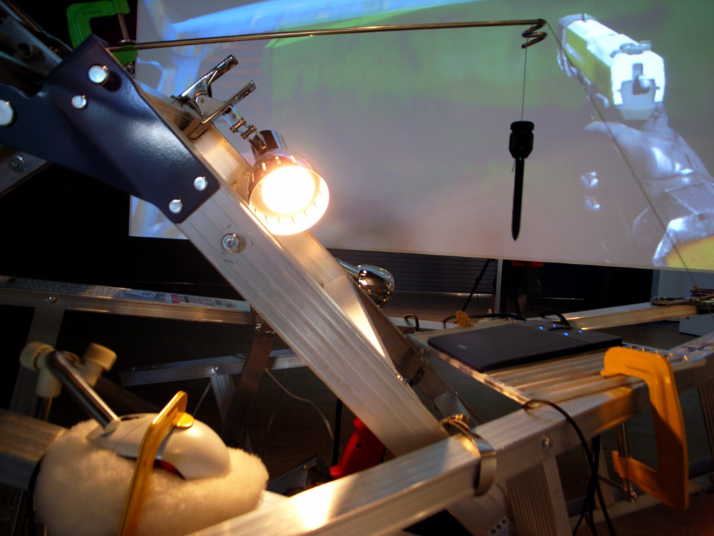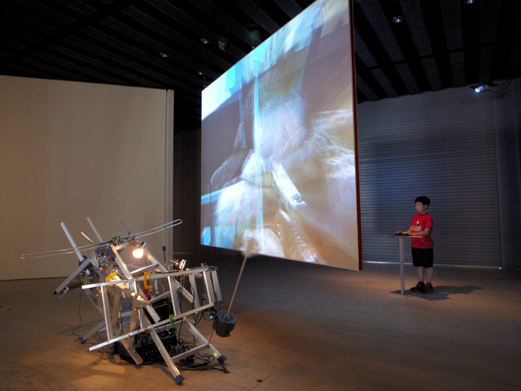 A two-player version of Object B (2006). There is only one robot instead of three in VS, and a terminal for users to log in was placed behind the screen facing the robot. The virtual space was a simple lawn, focusing more on the relationship between the robot and the user.