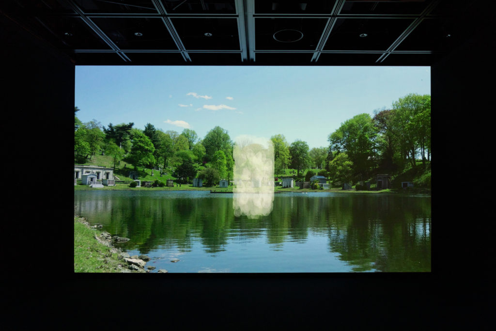 Realm is a net-based artwork that can be accessed via two platforms: smartphones and computer web browsers. When users access the same URL through these different channels, they encounter different images and experiences, accompanied respectively by the words “You can’t see there from your mobile” and “You can’t touch there from your desktop,” which emerge at the bottom of each version’s screen. The images of invisible natural landscapes and beautiful graves hint at an environment where two totally contrasting elements coexist. exonemo experienced the lockdown in New York City imposed amid the spread of COVID-19, a period when people were unable to see anyone outside their families. It was their daily visits to a nearby cemetery during the lockdown that inspired the idea for Realm, which they went on to shape into a poetic expression only achievable through the medium of net art.