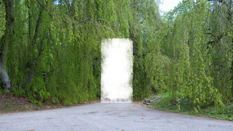 A cracked window, sliced