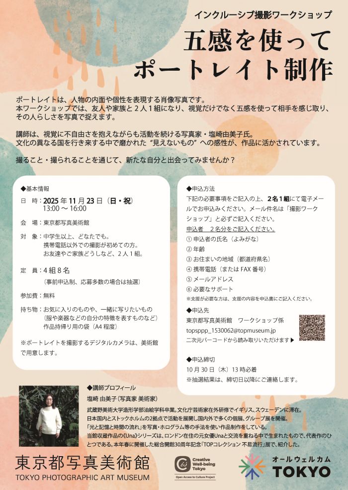 インクルーシブ撮影ワークショップ 「五感を使ってポートレイト制作」【開催日:2025年11月23日(日・祝)】