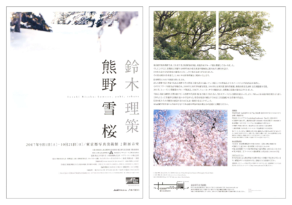 His upcoming exhibition will consist of what can be described as his lifework, 'Kumano', his well-known 'Sakura' series and also a new body of work entitled 'Yuki'. His photographs capture a universal symbol while making the viewer realize that time and space are simply an aggregate of the moments we call 'the present'. Oscillating between the universal and the instant, his work resonates perfectly with characteristics inherent in photography.