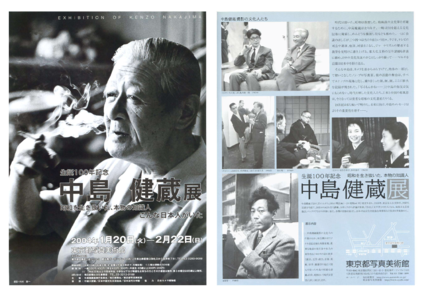 戦争に押し流され、原爆と 敗戦に意気阻喪した日本の文化界を、民主的連帯意識による共通の広場へと結集させることを志し、行動的知識人として特に文化団体の基盤づくりに邁進する。 日本文芸家協会、日本ペンクラブの再建、日本比較文学会、日本著作権協議会、日本オーディオ協会などの創立に参画し重要な役割を担った。当然これらの フィールドには多彩な交友が成り立つ。後半生彩った中国の友人たち、彼が生涯にただ一人師匠と仰いだ詩人菊池香一郎をはじめ、思想家三木清、作曲家諸井三 郎、仏文学者渡辺一夫、ジャーナリスト笠信太郎さらに井伏鱒二、中野重治など、文人は枚挙にいとまがない。戦中関係した東方社では、林達夫、写真家木村伊 兵衛、デザイナー原弘などと交わりを得た。各方面ですぐれた人々との交友関係は、そのまま彼の行動に直接の糧となっていった。日記・メモ魔・資料収集魔の 彼は、写真機をいつも首にぶらさげてメモがわりに文人・音楽家・写真家など、活躍の場を即スナップの場に変えて写しまくった。プロ写真家・関係者との交友 も深く、ノン・プロと自称した。1968年6月15~20日、長年撮りためられた知人の肖像、フォトジェニックな顔の持主達を並べて『中島健蔵写真展 「顔・顔・顔」』が銀座ニコンサロンで開催された。これには、1969年日本写真協会より年度賞が授けられた。