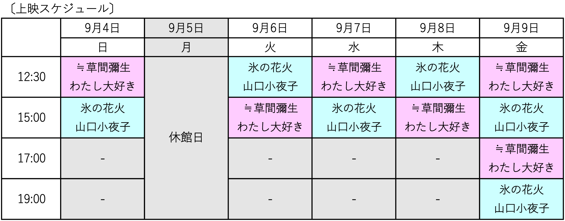 • 上映期間:2016年9月4日(日)~9月9日(金)