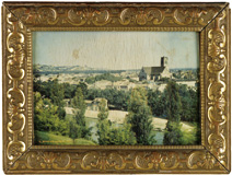 右)「アジャンの風景、木と水の流れ」 ルイ・デュコ・デュ・オロン 1872年 エリオクロミィ ※世界初のカラー写真
